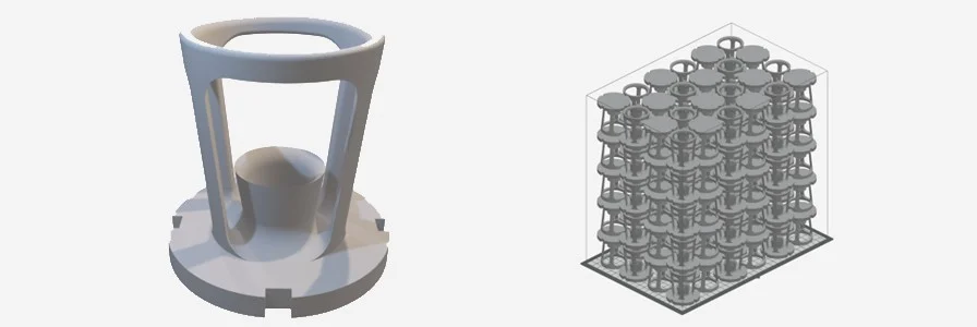 A CAD model of a part and its representation in a nested build.